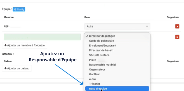 La fonctionnalité « inscrire une équipe » permet de désigner un responsable ..