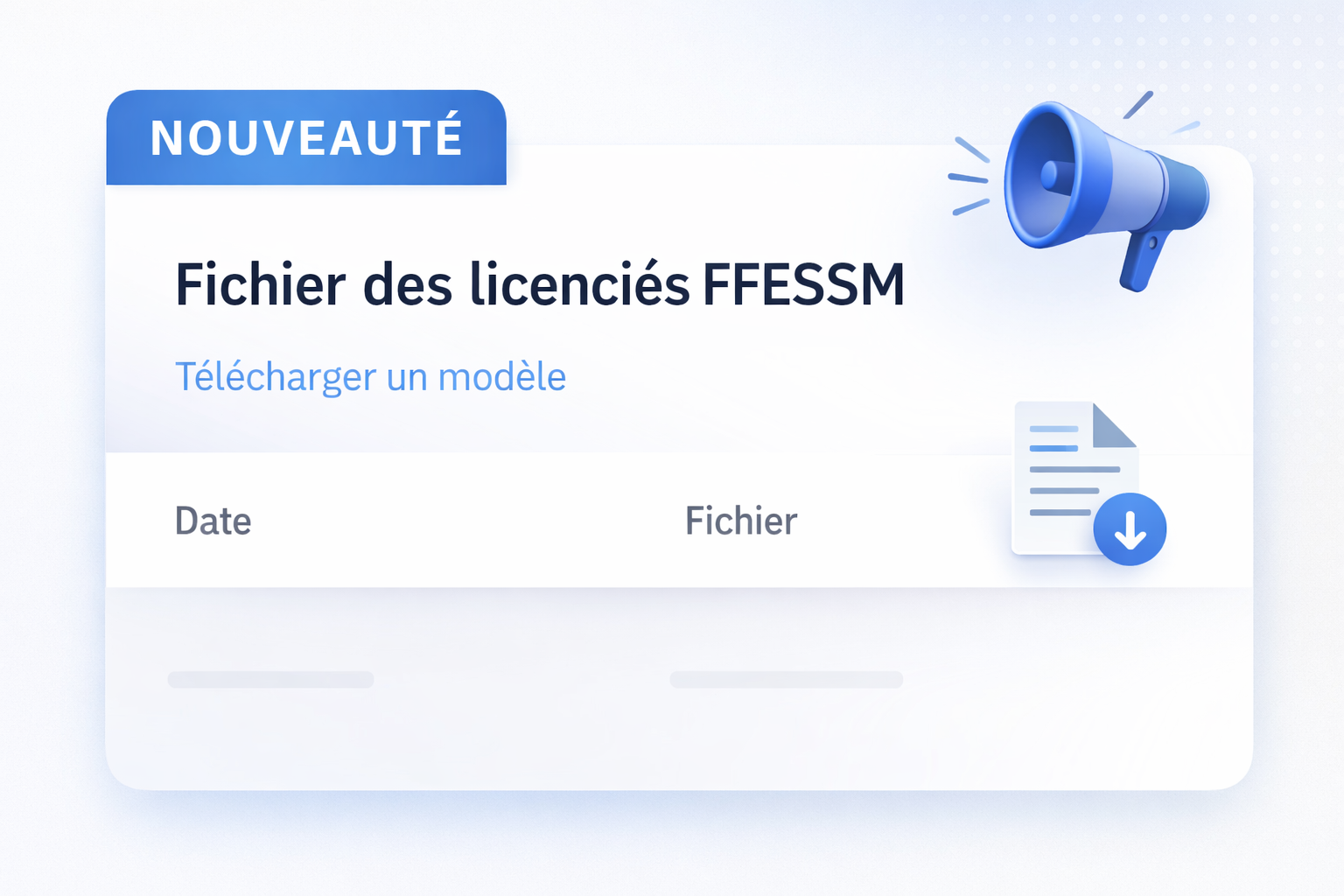 La fonctionnalité “Fichier FFESSM” permet d’importer le fichier licenciés..